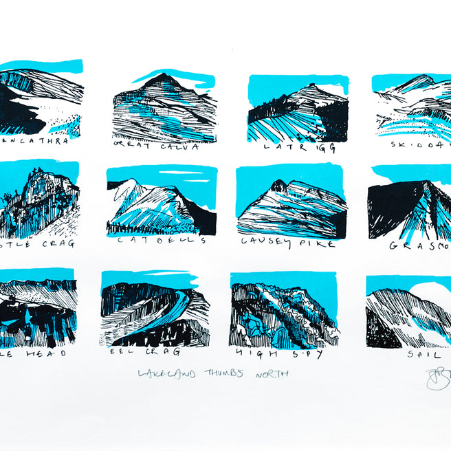 2 colour screen print of a group of North Lakeland fells. Printed as an edition of 20 on 300gsm Canaletto.